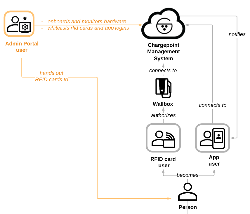 Ein Super User kann über das Admin-Portal zusätzliche Ladestationen mit dem System verbinden, zusätzliche Nutzungsmedien autorisieren und vieles mehr: