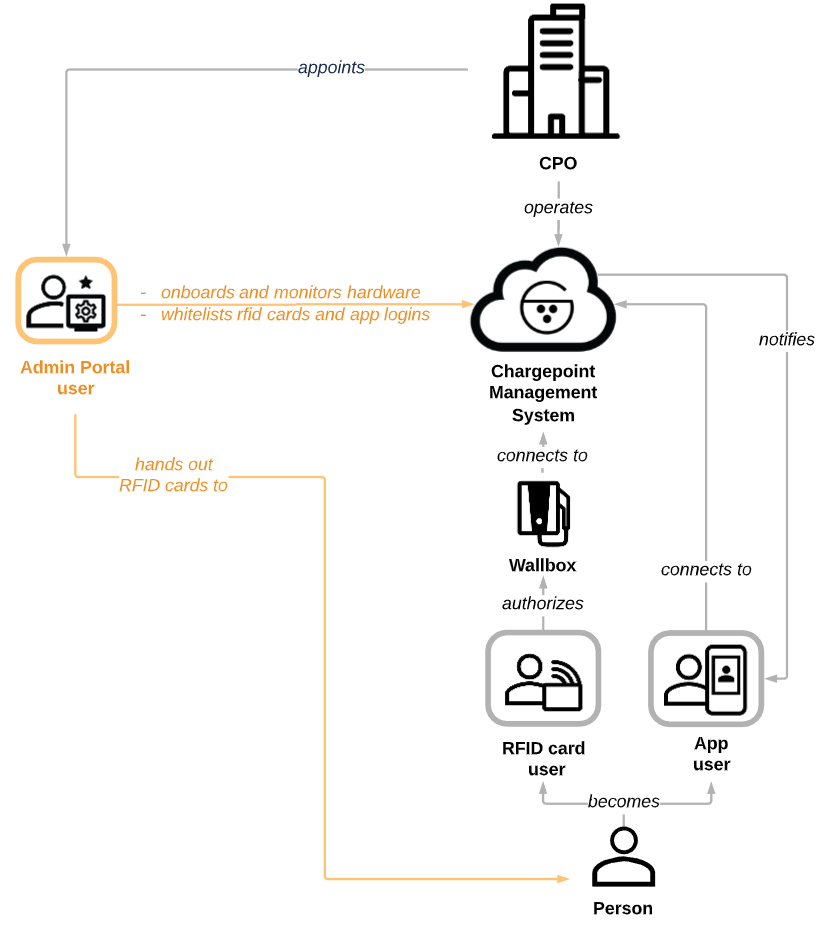 Der Super User wiederum wird vom sogenannten Charge Point Operator (CPO) ernannt. Der CPO fungiert als Betreiber der Ladeinfrastruktur: