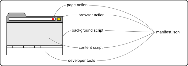 ExtensionaufbauEine Chrome Extension kann Bestandteile für die verschiedene Bereiche das Browsers haben: