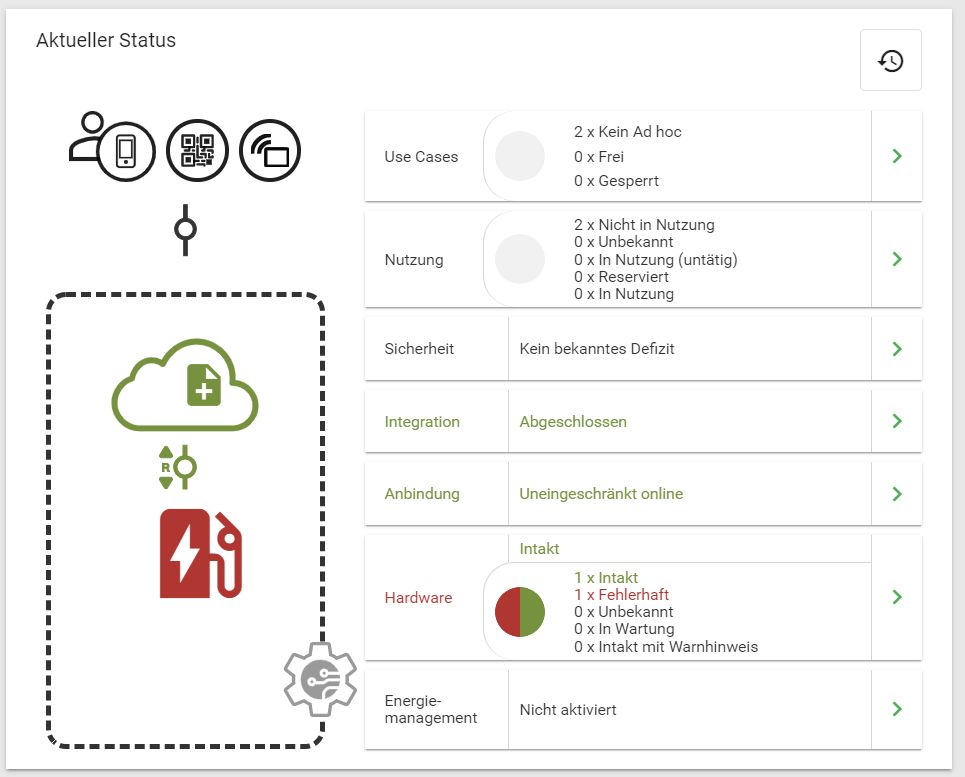 Auf dem Dashboard zeigen wir gut sichtbar an, bei wie vielen Objekten Handlungsbedarf besteht (der rote Balken ist anklickbar für Details).