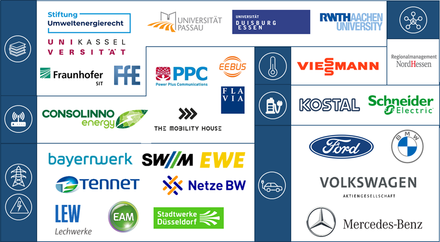 Der Fokus der Netzbetreiber und Energieversorger liegt auf der intelligenten Integration der Elektromobilität und weiterer Flexibilitätsoptionen in das Energiesystem. Hierfür soll die bestehende Infrastruktur durch Hard- und Softwarekomponenten ergänzt werden. Die Kommunikation zwischen den Elektrofahrzeugen und dem Stromnetz soll mittels der Smart-Meter-Gateways erfolgen. Zusätzlich werden neue Mechanismen und Steuerungsprozesse entwickelt und erprobt. Die IT-Prozesse und Komponenten werden von beteiligten Unternehmen für die interoperable Kommunikation zwischen den Akteuren und Komponenten entwickelt und umgesetzt. Wichtig ist hier die Entwicklung von intelligenten Lade- und Energiemanagement-Algorithmen.
