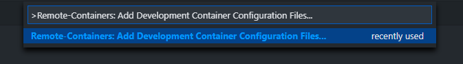Nachdem die benötigte Software installiert wurde, kann mit der Erstellung der Entwicklungsumgebung fortgefahren werden. Dafür muss VS Code in dem Repo geöffnet werden, wofür die Umgebung erstellt werden soll. Mit dem Kommando „Remote-Containers: Add Development Container Configuration Files…“ aus der Befehlspalette ( Ctrl+Shift+P ) lässt sich eine Auswahl von möglichen Basis-Containern öffnen.